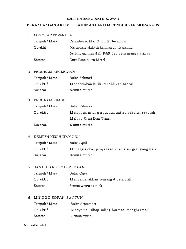 Perancangan Aktiviti Panitia Pendidikan Moral Sk Pdf