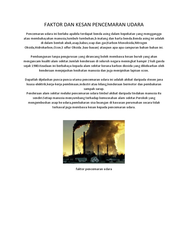 Faktor Dan Kesan Pencemaran Udara Pdf